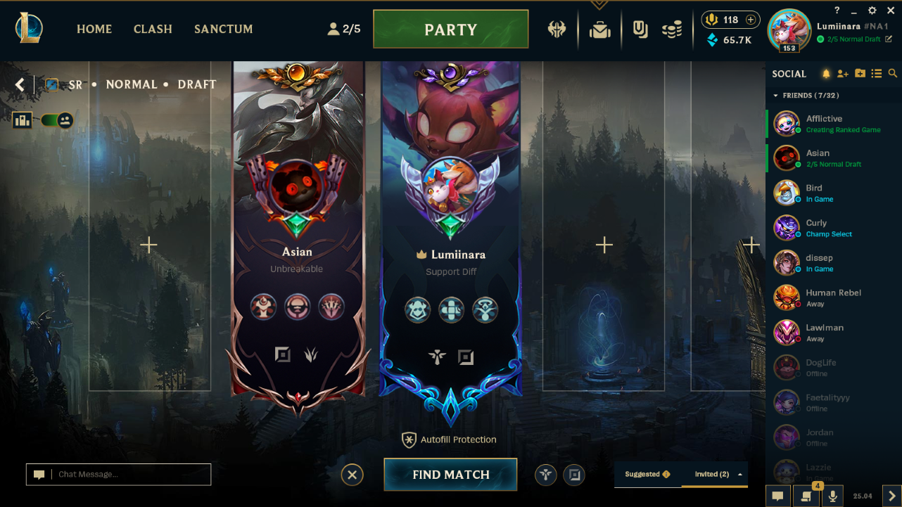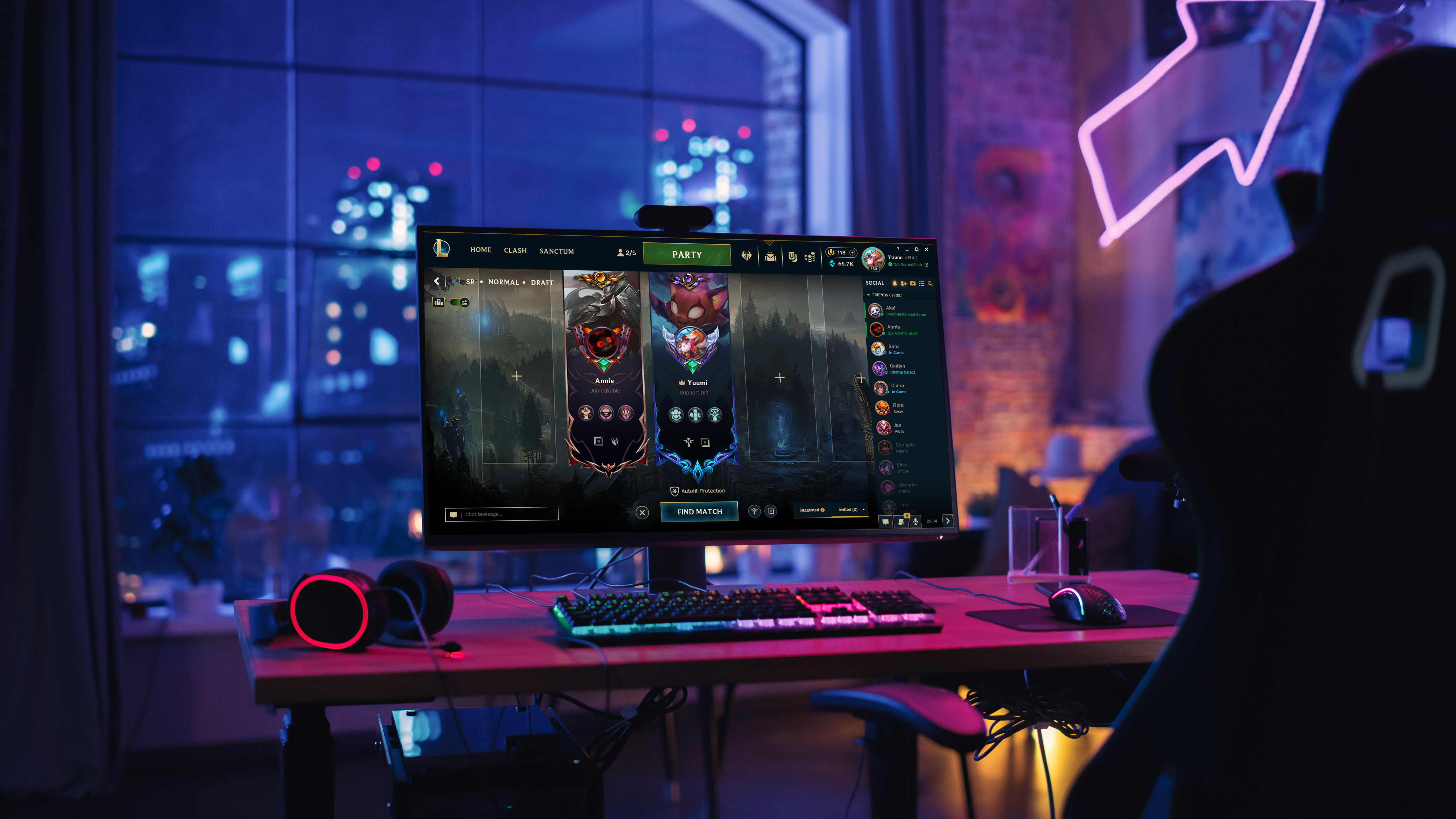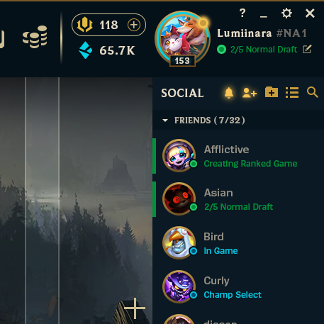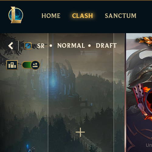 My approach is retain the branding of League of Legends while updating the day-to-day quality of finding where everything is. A few updates specifically targeted were the ability to see your tag after your username, to easily update your status, and to clear out some of the icons crowding the top bar. I also wanted to option of an expandable friends list and customizable features of your banner to match the current options of your profile appearance. Consolidation of icons and a rework of the client to only adhere to League of Legends, since Riot Games has their own existing client to hold Teamfight Tactics and Legends of Runeterra. Addition to the new Sanctum rolling system that just arrived, I wanted to place it outside of the crafting zone to keep them separated, as well as keeping Clash its own important place on the left.