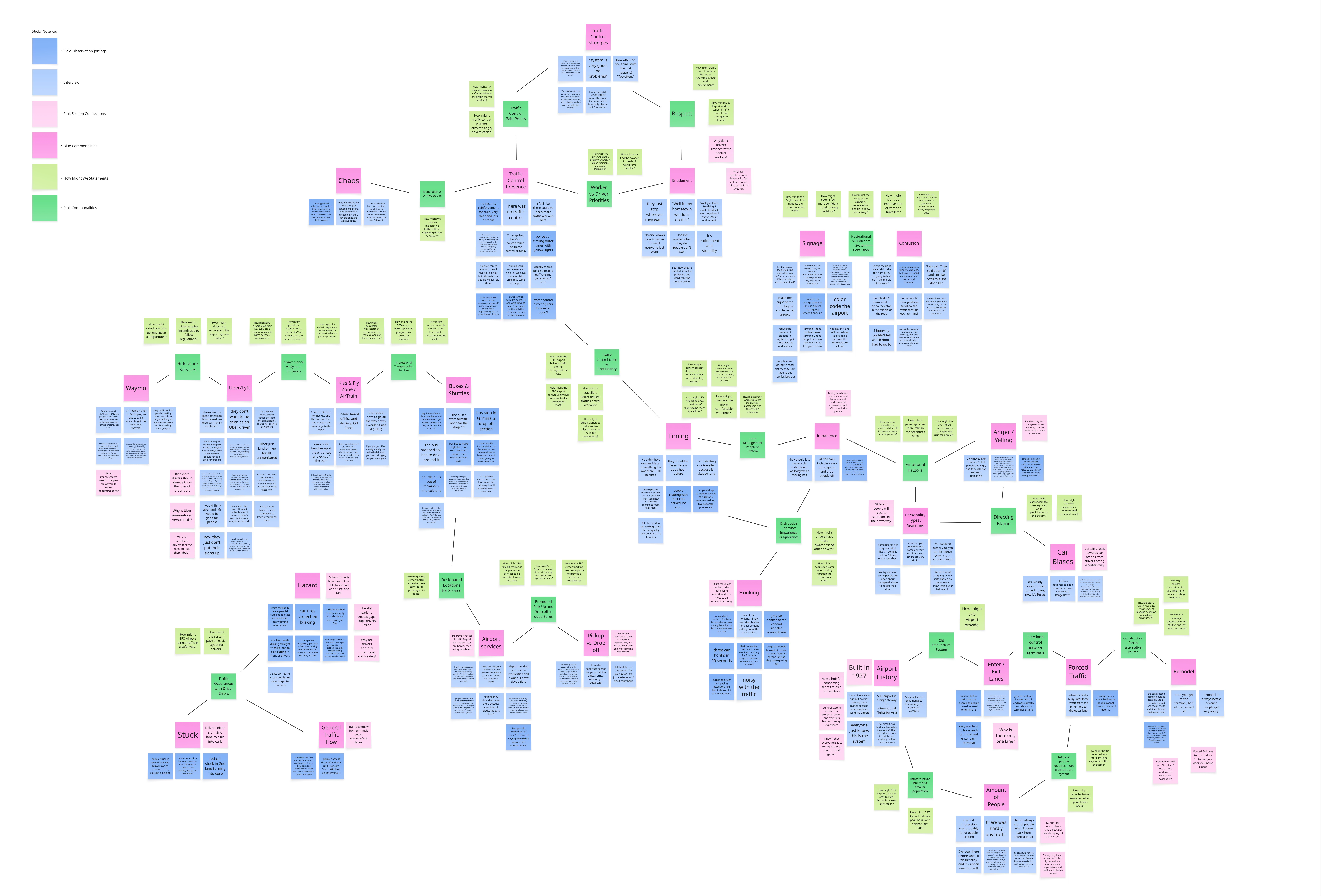 This project pushed me to trying many new methods including ethnography with a ground traffic control worker and observational field studies of the full location. Most importantly in this, I had learned to understand the most important questions to ask when interviewing another person. I had formulated an interview guide with a list of questions where some drivers did not connect to some of the questions I had asked. Especially during my worker interview, I dropped most of my guide to pursue what they were speaking on rather than to ask from my own perspective, as they were more of an expert in the field. I started to grasp better ways to pay attention to the phrasing or words used and to reply with language that they were familiar with. This led me to much more insight that still related to topics, but answers I had not accounted for when originally creating questions. I learned a lot more about the inter workings of the system, such as groups of flight times being scheduled and waves of traffic forming an hour prior to departure. I also came across an entire subsection of rideshare services who hide their side stickers to appear as usual drivers, working around the laws and rules that were set up for them.